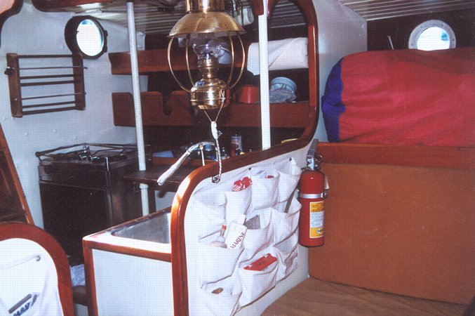 S/V Jocelyn: Port Galley, below. Gimbled Kenyon pressurized kerosene stove w/ oven
