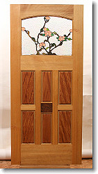 Here is New Prairie Rose Door The door wood is Mendocino Cypress The panels are bookmatched "ribbon flame" Mahogany |